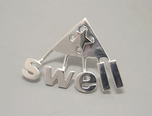 耳たぶにswellの文字が並ぶ、シンプルなシルバーバージョン。